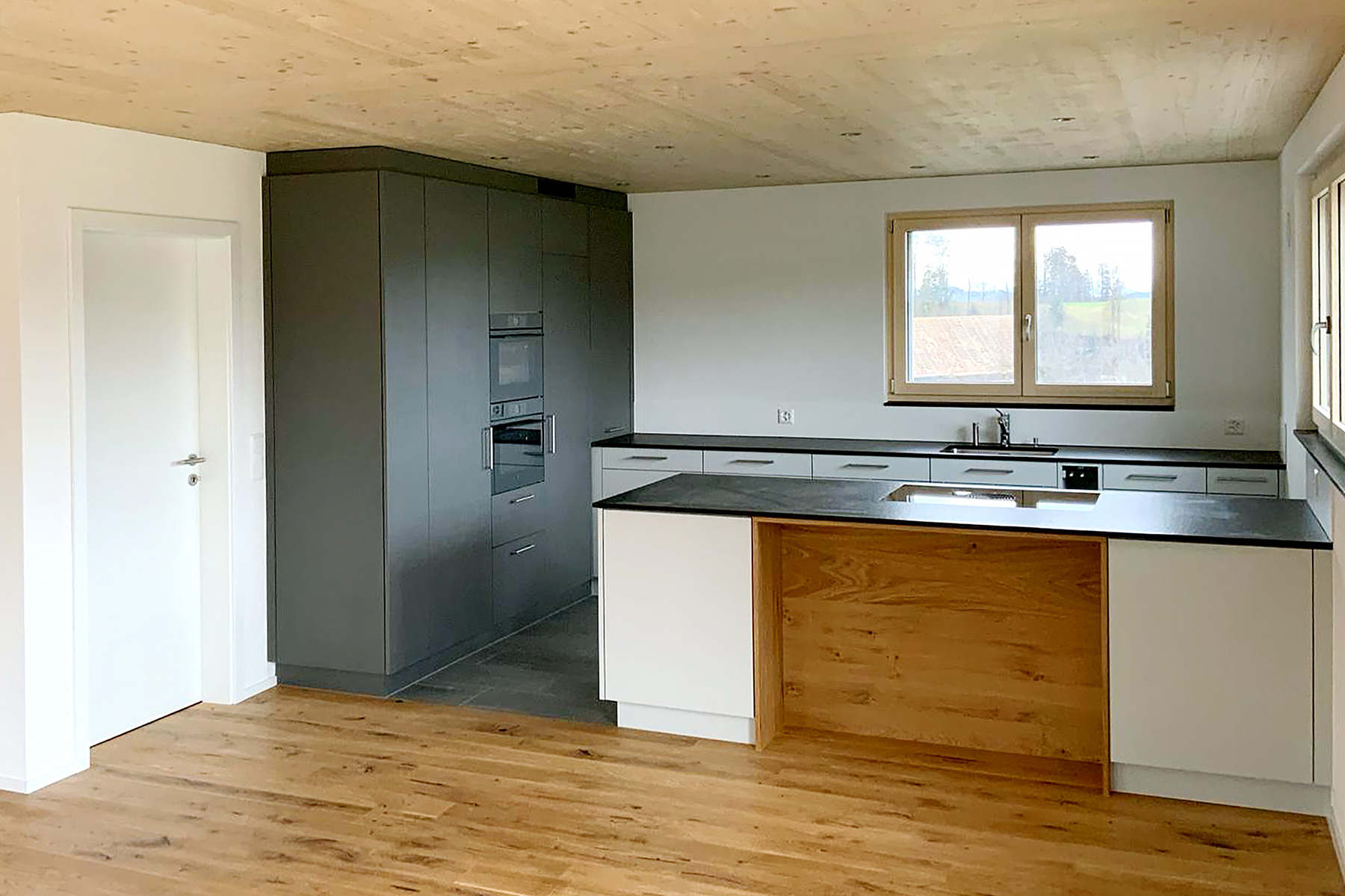 Wir planen und realisieren Ihre massgefertigte Küche ganz nach Ihren Wünschen. Ausgangslage ist der zur Verfügung stehende Raum und Ihre persönlichen Bedürfnisse. Wir beraten Sie gerne und zeigen die verschiedenen Möglichkeiten in Ausstattung und Design. Ihre Traumküche fertigen wir in unserer Schreinerei mit hochmoderner CNC Holzbearbeitung – ob für einen Neubau oder eine Renovation. Von der Massaufnahme bis zur Montage setzen wir auf höchste Qualität und durchdachte Lösungen.